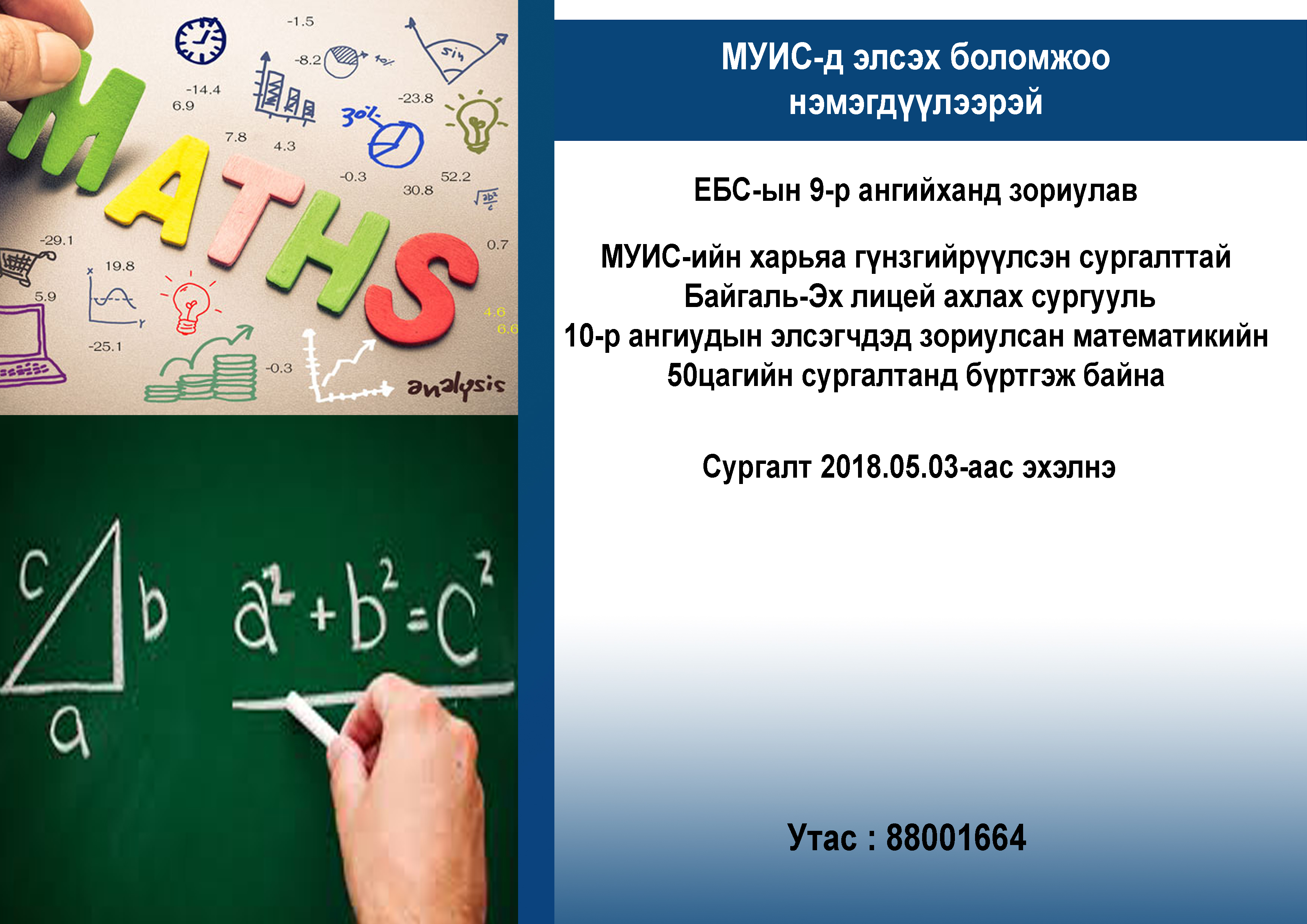 10 р ангид элсэгчдэд зориулсан математикийн сургалт болно