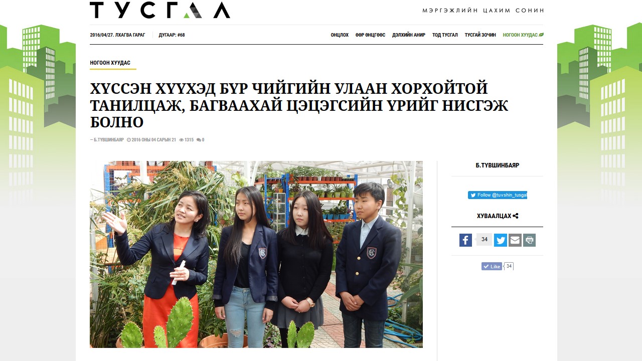 Байгаль орчин, Ногоон хөгжил, Аялал жуулчлалын яам болон Цэнгэг усны нөөц, Байгаль хамгаалах төвөөс Монгол орны нэн ховор, ховор амьтан ургамлыг хамгаалах зорилгоор ерөнхий боловсролын сургуулийн ахлах ангийн сурагчдын дунд зохион байгуулсан “УЛААН НОМ” танин мэдэхүйн улсын уралдаанд МУИС-ийн Байгаль-Эх лицей ахлах сургуулийн Ё.Даваасүрэн багштай багийн хамт олон /11д ангийн суралцагч Х.Дашдэлэг, П.Билгүүн, 11г ангийн […]