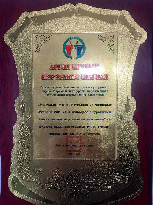 “Аргил” мэтгэлцээний клубын хамт олонд тэмцээн амжилттай зохион байгуулсанд баяр хүргэе. Манай клубд итгэл хүлээлгэн шагнаж урамшуулж, урмаар тэтгэсэнд нийт мэтгэлцэгчдийн өмнөөс талархал илэрхийлье.