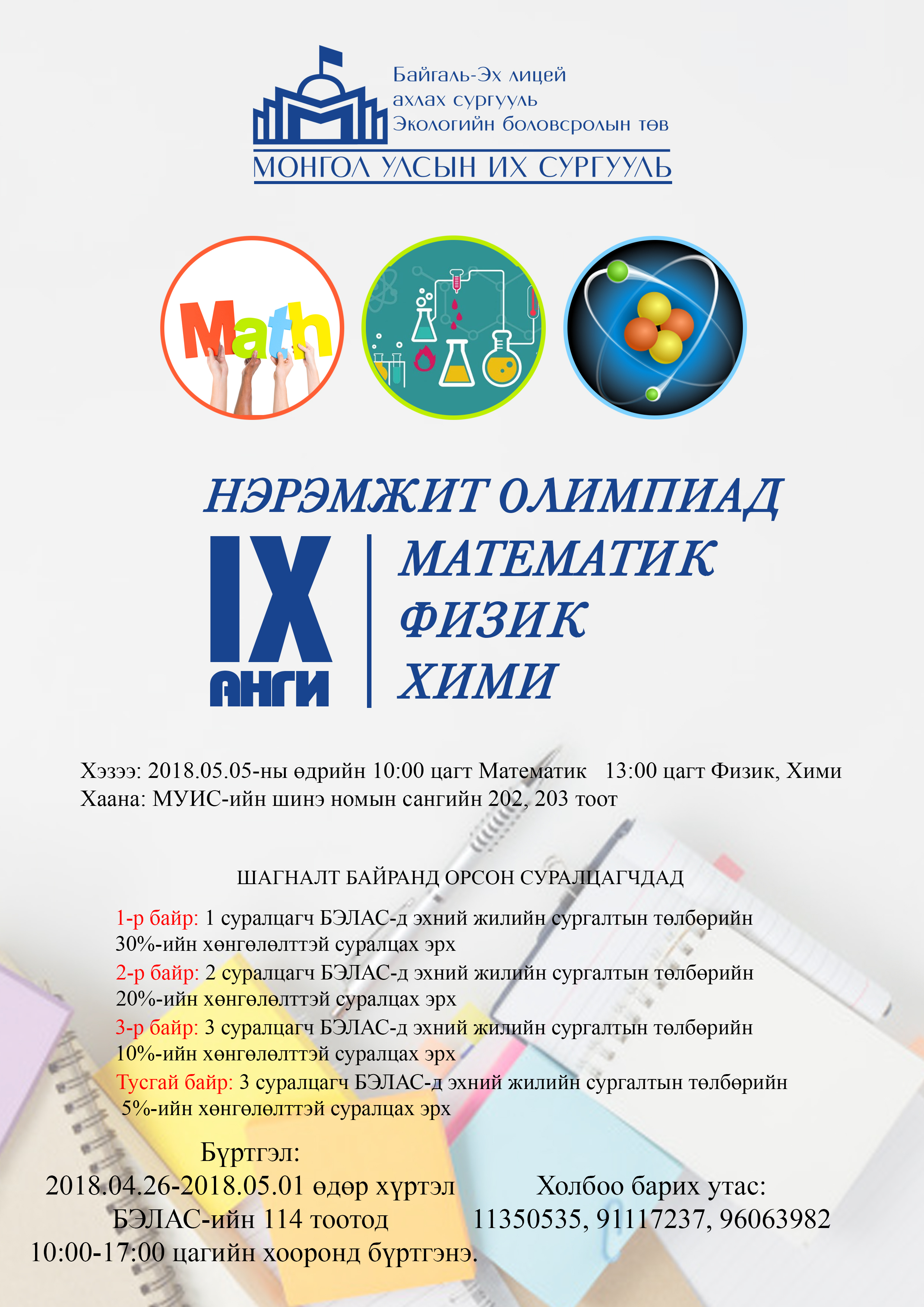 Шалгалтын дүнг Байгаль-Эх лицей ахлах сургуулийн хичээлийн байрнаас харна уу. Шалгалтын комисс 2017-06-22