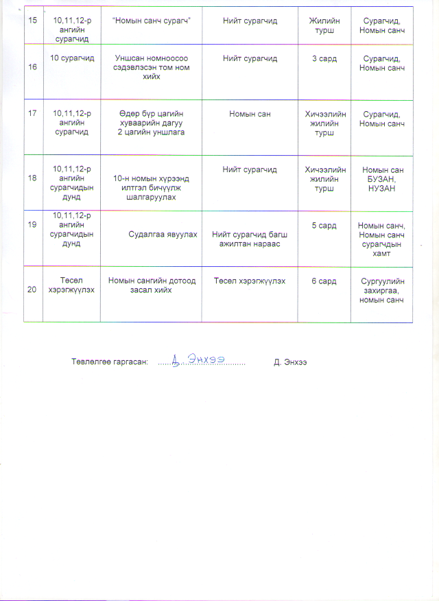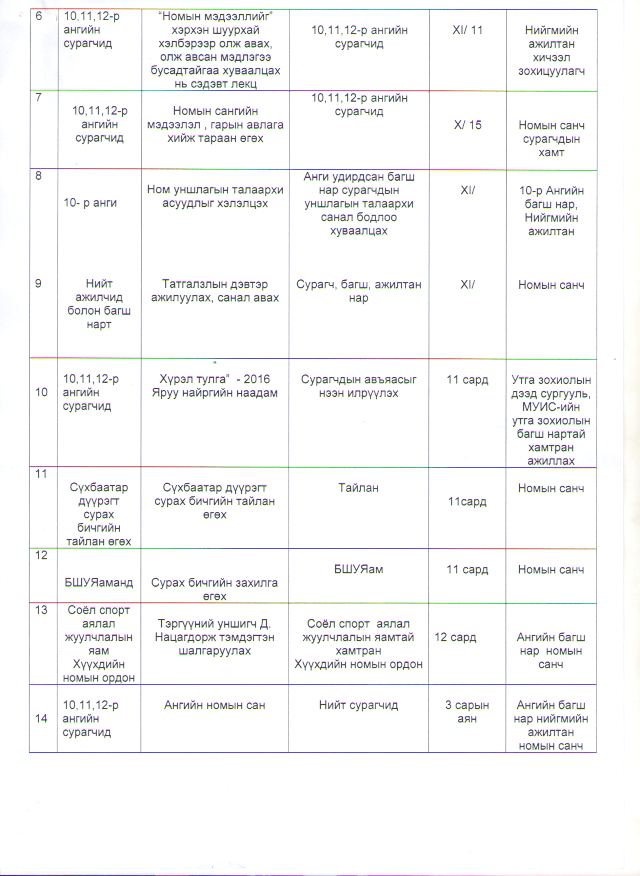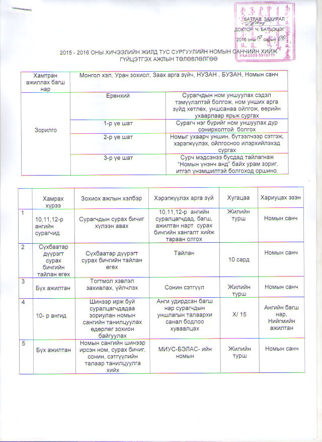 2015-2016 оны хичээлийн жилийн төлөвлөгөө