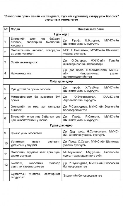 Жич: Сургалтанд оролцогчдын тоо 15 хүрээгүй тохиолдолд багц сургалт цуцлагдаж болохыг анхаарна уу! Ийм тохиолдолд бүртгүүлсэн хүмүүст утсаар мэдэгдэх болно.