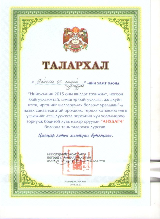 Нийслэлийн 2015 оны шилдэг тохижилт, ногоон байгууламжтай, цэмцгэр байгууллага Нийтэлсэн: Саранзаяа Сэтгэгдэл байхгүй