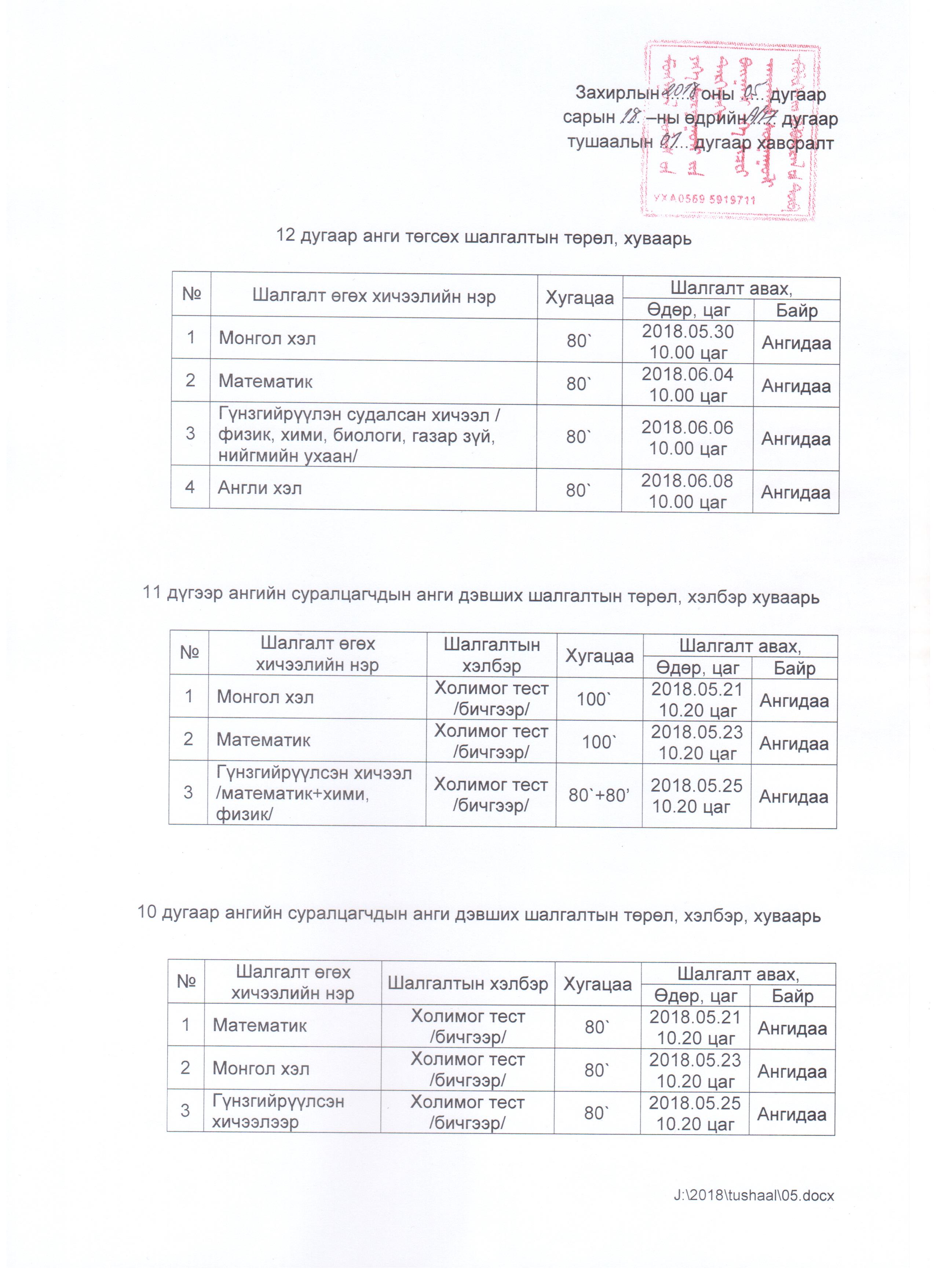 Дэвших, төгсөх шалгалтын хуваарь
